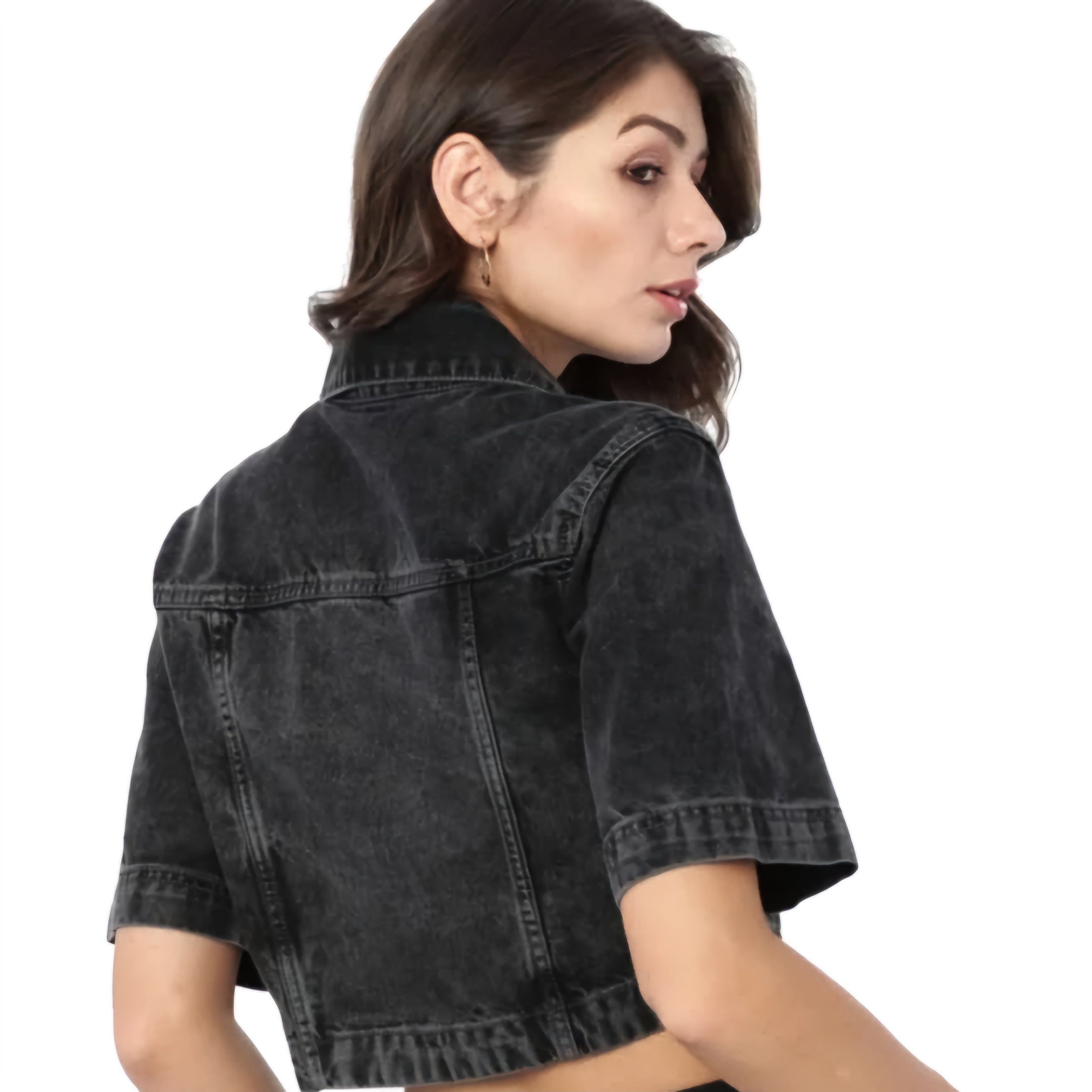 کراپ کت زنانه آستین کوتاه جین وارداتی
