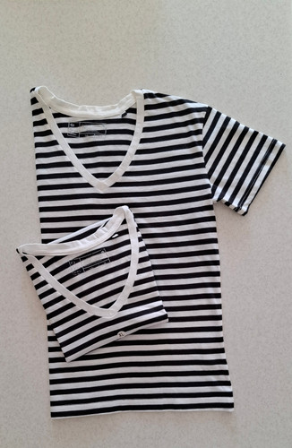 تیشرت وارداتی یقه 7 آستین کوتاه راه راه سفید مشکی