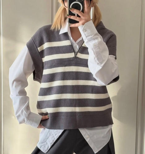 وست بافت زنانه وارداتی یقه هفت جلو بسته