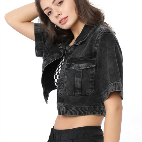 کراپ کت زنانه آستین کوتاه جین وارداتی